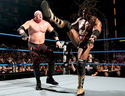 Deuce and Domino may aswell of been called Kenicky and whatever John Travoltas Grease character was. Double hiptoss by the champions who are dominating Domino. Backbreaker by Deuce to London. Domino in now as London is playing face-in-peril, Deuce throws London into the turnbuckle in a scoop slam position. The beat down continues until London dodges D and D like I dodge Bowser when I have no coins on Mario then gets the tag to Kenderick who beats on challengers, backslide on Deuce gets 2. Deuce 'N' Domino go for Doomsday Device but Kendrick ducks the clothesline and rolls up Domino. **1/2 - Was okay. I liked the Kendrick/London team.